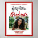 This custom red high school choir graduation party poster features a cute musical staff with treble clef and notes for a class of 2024 graduate above your senior portrait photo. Customize with your graduating year under the photograph for great personalized music school graduation celebration decor.