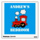 Red choo choo train wall decal for boys bedroom or baby nursery. Cute locomotive illustration home decor with personalizable text for name or monogram. Removable reuseable wall art decorations for kids. Funny baby shower or 1st Birthday gift idea for children. Make your own for son, grandson, nephew etc. Railway theme in primary colors. Sign for door or above the bed.