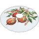 Tree skirt with a vintage style illustration. 3 red Christmas baubles surrounded by green holly and berries. Stylish retro design.