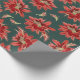 Red Christmas Cactus Flowers on Evergreen Wrapping Paper