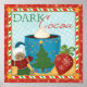 © Veronique Charron / Wild Apple. This red Christmas cup features a cute little snowman in the middle, a cookie shaped like a Christmas tree on the left, and a chocolate muffin on the right.