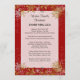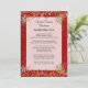 Red and gold Christmas menu template. Dark red with gold snowflake borders at the top and bottom. Include the family name and date at the top, then list all the food planned for a holiday celebration. Include the name of the cook / chef for each item for a more personalized effect.