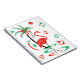 A fun, festive, flamingo design with a retro touch in red and green. A red flamingo wades in the water next to a palm tree decorated with Christmas baubles and ribbon. A customizable design for you to personalise with your own text, images and ideas. An original digital art image created by Jess Perry.