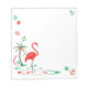 A fun, festive, flamingo design with a retro touch in red and green. A red flamingo wades in the water next to a palm tree decorated with Christmas baubles and ribbon. A customizable design for you to personalise with your own text, images and ideas. An original digital art image created by Jess Perry.