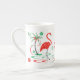A fun, festive, flamingo design with a retro touch in red and green. A red flamingo wades in the water next to palm trees decorated with Christmas baubles and ribbon. A customizable design for you to personalise with your own text, images and ideas. An original digital art image created by Jess Perry.