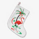 A fun, festive, flamingo design with a retro touch in red and green. A red flamingo wades in the water next to a palm tree decorated with Christmas baubles and ribbon. A customizable design for you to personalise with your own text, images and ideas. An original digital art image created by Jess Perry.