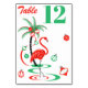 A fun, festive, flamingo design with a retro touch in red and green. A red flamingo wades in the water next to a palm tree decorated with Christmas baubles and ribbon. A customizable design for you to personalise with your own text, images and ideas. An original digital art image created by Jess Perry.