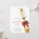 Raise a toast to the season with this elegant red holiday Christmas party invitation featuring a champagne bottle topped with a bright red bow, winter berries, and lush ferns. Perfect for festive gatherings, office parties, and holiday celebrations. See our collection for more matching holiday party designs.