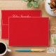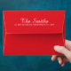 A modern and elegant design featuring family name in elegant calligraphy font style on red background.