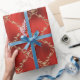 Red Christmas Holiday Gold Glitter Damask Gift Wrapping Paper