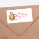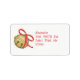 A Christmas return address label, a cute design with a family name template, a gold and red, jingle bells design, a simple, minimalist, whimsical holiday label, and classic holiday mailing supplies.