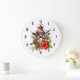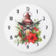 Red Christmas Lantern Poinsettia and Pine Large Clock