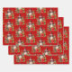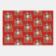 Red Christmas Lantern Poinsettia and Pine Pattern Wrapping Paper Sheets