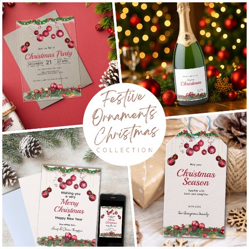 Red Christmas Ornaments Festive Greeting Holiday Card