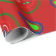 Elegant red, green, blue and white design on red background Christmas wrapping paper.