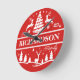 Red Christmas Personalized Family Name | Holiday Round Clock