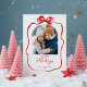 Red Christmas Photo Hand-Drawn Bow Ribbon Holiday Postcard