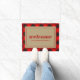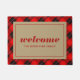 Red and black Christmas plaid customizable red typography with rustic craft paper background.