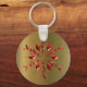 An elegant Christmas keychain (or keyring) with a large red Christmas star (or snowflake) on a gold background to add a festive and sophisticated touch to your keys for Christmas this year.