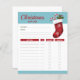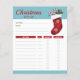 Helpful checklist for planning Christmas gifts for friends and loved ones. The design features Destei's festive illustration of a red Christmas stocking that has two candy canes coming out of it. The top reads: "Christmas gift list" on a blue background color and then there is space for the recipient's name and some notes. There are also sections for gift ideas, price, whether the gift has been bought or not and whether the gift has been wrapped. The accent color is light blue bringing along that extra winter feel to the design.