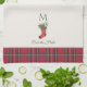 stylish red black tartan,rustic christmas custom monogram,personalized customized kitchen towel,personal name check pattern,deck the halls dishcloth,add your own text,merry xmas family surname,fancy plaid initialed initial,classic traditional berries holly,christmassy xmasy pine stocking