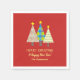 Add festive charm to your holiday table with these personalized red Christmas napkins featuring three colorful patterned Christmas trees and the cheerful greeting “Merry Christmas & Happy New Year!” Customize with your family name for a fun and memorable touch to your seasonal gatherings.