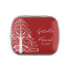 The festive Red Christmas Tree Winter Wedding Favor Candy Tin can be personalized and dated and filled with candies or mints for your December engagement party, bridal shower or marriage reception. This classy custom wintery party favor features an intricate white xmas tree design with a red background.