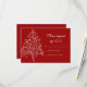 Customize the festive Red Christmas Tree Winter Wedding RSVP Response Card with your December marriage reply date. This elegant custom wintery r.s.v.p. card features an intricate white Christmas tree design on a red background.