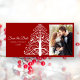 Set a festive tone for your upcoming December nuptials with the elegant Red Christmas Tree Winter Wedding Save the Date Photo Card. Customize it with your names, marriage ceremony date and personal picture. Feel free to change the text, font or background color to suit your matrimony needs. This classy custom wintery marriage ceremony and reception keep the date photocard features a white decorative xmas tree design on a red background. Available as a printed invitation for mailing or as a digital download for easy sharing digitally online.