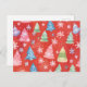 Red Christmas Trees Watercolor Holiday Postcard
