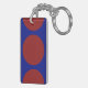 This bold geometric pattern features a red circle in the center and two red half circles on the edges of a blue background.
