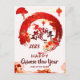 The design features a red Circular Brush Stroke dotted by Chinese character calligraphy "福“ and traditional Chinese decorative elements such as flowers、fans、and lanterns, surrounding an image formed with Chinese calligraphy "恭賀新年“, papercutting rabbit, and number "2023 . The background is overlaid with cloud shading pattern. Bright red, symbolizes good fortune and joy, is the most popular color for Lunar New Year celebration. The whole design shows good wishes for health, love, wealth, luck, and happiness. The wishes/messages on the front and the back are editable by you.