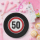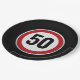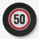 Red round traffic speed sign with a modern graphic style. Customise your age for the perfect cars and drivers themed birthday party.