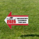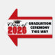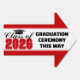 Customized red Class of 2026 graduation arrow yard sign for a high school or college graduate. Cool varsity letters for the year on a great custom commemorative outdoor decor to point seniors towards the ceremony or party.