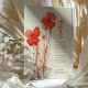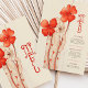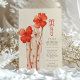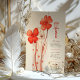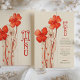 Brighten your wedding table with this playful and elegant Art Nouveau-inspired menu card. Featuring a whimsical design of vibrant red clover flowers and a charming figure framed by flowing lines and soft cream tones, this card exudes a delightful vintage charm. Perfect for romantic, garden, or playful wedding themes, the design combines artistic flair with sophistication. The customizable menu details make it an unforgettable keepsake for your special day.