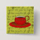 Red Coffee Cup Art on Lime Green Script Words Pinback Button