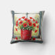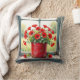 Floral throw pillow. A gorgeous ai watercolor illustration of red poppies in a red tin painted coffee can sitting on a window sill on a summer day.