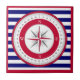 Red Compass Rose Blue and White Stripe Ceramic Tile