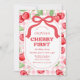 Red Coquette Bow Cherry First Birthday Party Invitation