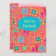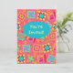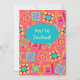 Invite a quilter or quilt lover with this colorful fully customizable quilt invitation. Fully customize on the front and back to add your own words, names and other information. This original quilt art makes a vibrant invitation. Quilt art based on original art features favorite patchwork quilt blocks plus unique blocks in vibrant and dynamic colors of orange, yellow, pink, turquoise, and lime green on a red coral background for a beautiful color palette. A turquoise teal blue oval is on the front of the card to say "You're Invited" or other words of your choice. Show your love of quilting with these quilt art designs with other quilt art products. Quilt art is original art from fabric and quilt designer Phyllis Dobbs and is in a fabric collection from Quilting Treasures. This art is available on other products and in several color backgrounds. More products are available in Phyllis' BusinesswithFlair store. Match with coordinating stamps, envelopes, stickers and return address labels.