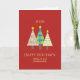 Celebrate the season in style with this modern red corporate holiday card featuring a trio of whimsical Christmas trees with retro, musical, and polka-dot patterns. Bold gold text reads “Happy Holidays” with space for your company name and personalized year. Inside, a heartfelt seasonal greeting from your organization extends warm wishes to clients, employees, or partners. Fully customizable text makes this the perfect professional holiday greeting for companies, offices, and small businesses.