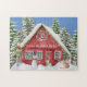 Red Country House Snow Holiday Scene Personalized Jigsaw Puzzle