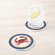 red crab with blue and red border coaster
