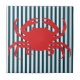 Red Crab on Nautical Stripes Tile