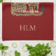 Red Cream Gold Leopard Animal Monogram Kitchen Towel
