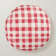 Red Cream Plaid Stripes Birthday Round Pillow