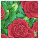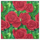 Fabric in a pattern of watercolor roses, in shades of deep crimson to rose red, against a background of green leaves