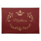Elegant deep red colored cloth place mat with graphics of a gold tone flourish and crown text area and custom text. Personalize the text to this lovely addition to your dining table.