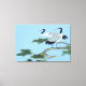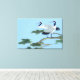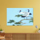 This Red Crowned Crane has two cranes in a tree with a blue sky back ground each crane has a white breast and blue gray feathers standing on the tree branch with the green pine needles and a light blue sky.this is a beautiful photo. on this Wrapped Canva