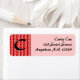 Red curl pattern address labels. Background and text color can be customized.